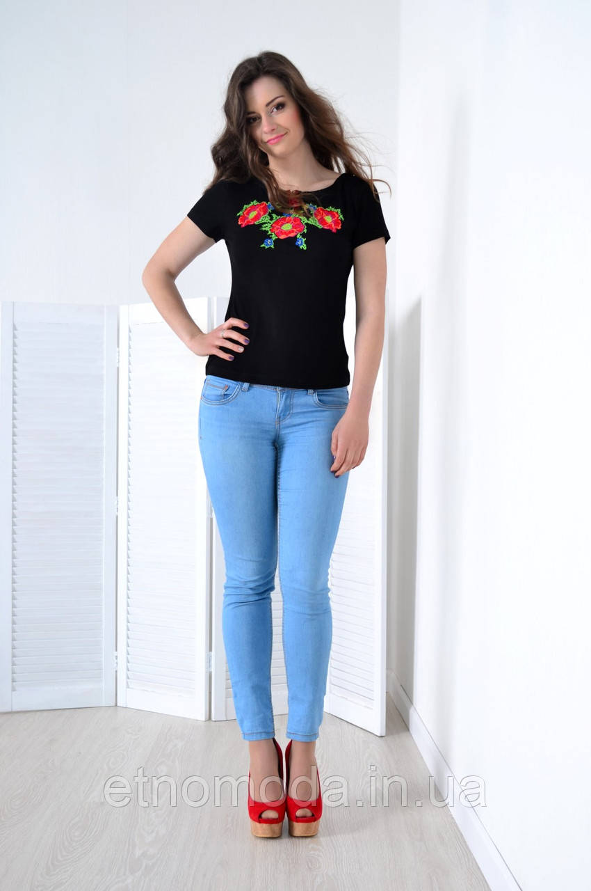 Футболка-вишиванка жіноча (трикотаж, кр) Макове намисто